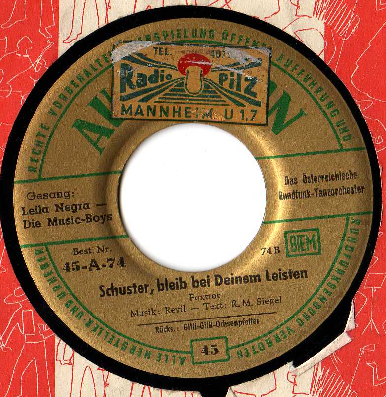 Von vielen als störend empfunden geben sie heute Informationen zu längst vergessenen Händlern wieder. Nach den mir vorliegenden Platten mit Stickern wurde dieses bis um 1964 praktiziert. Spätere Platten liegen zumindest mir nicht vor.