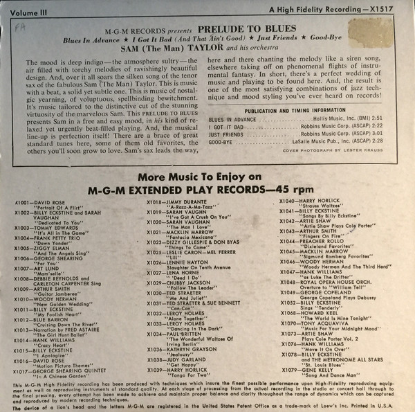 04 60....K12901....SAM (The Man) TAYLOR On Tenor Sax and DICK HYMAN At The Organ..And This Is My Beloved (60-XY-401)/Love From The Soul (60-XY-402)