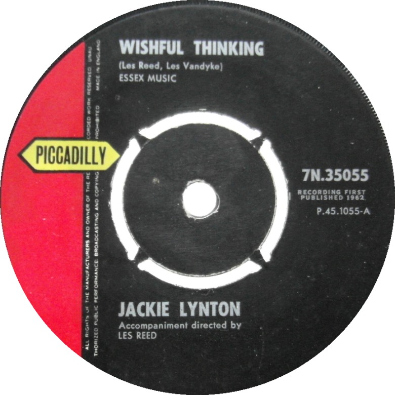 06 62....7N.35055....JACKIE LYNTON Accompaniment directed by LES REED..Wishful Thinking (P.45.1055-A)/Don't Take Away Your Love (P.45.1055-B)