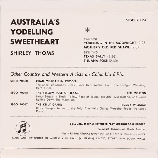 Australiens Yodelling Sweetheart hiess ab 1941 SHIRLEY THOMS,