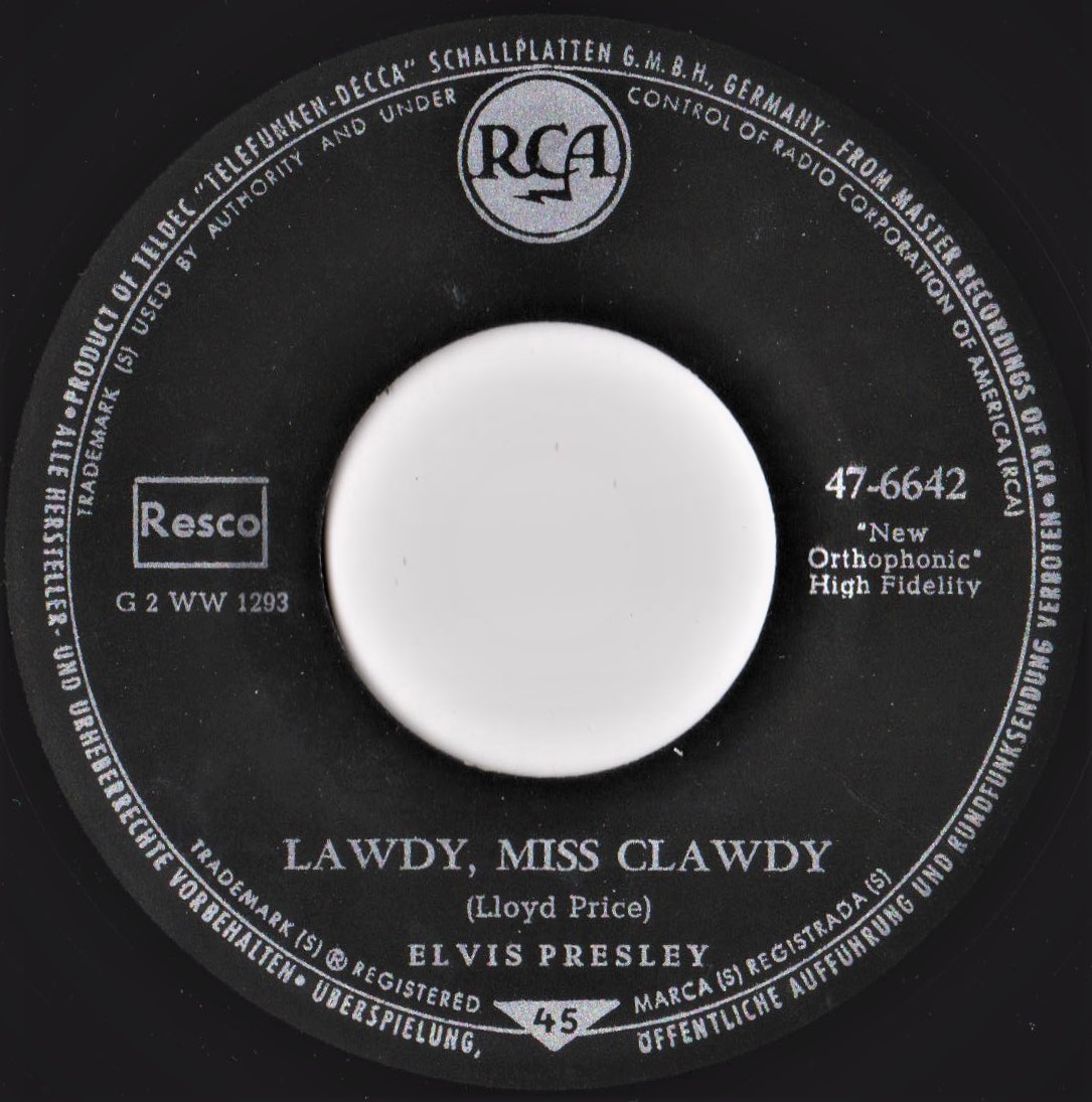 Die Lawdy Miss Clawdy Scheibe mit Flipside Shake Rattle And Roll sollte hier in der Rubrik Singles 1956 nicht fehlen.
