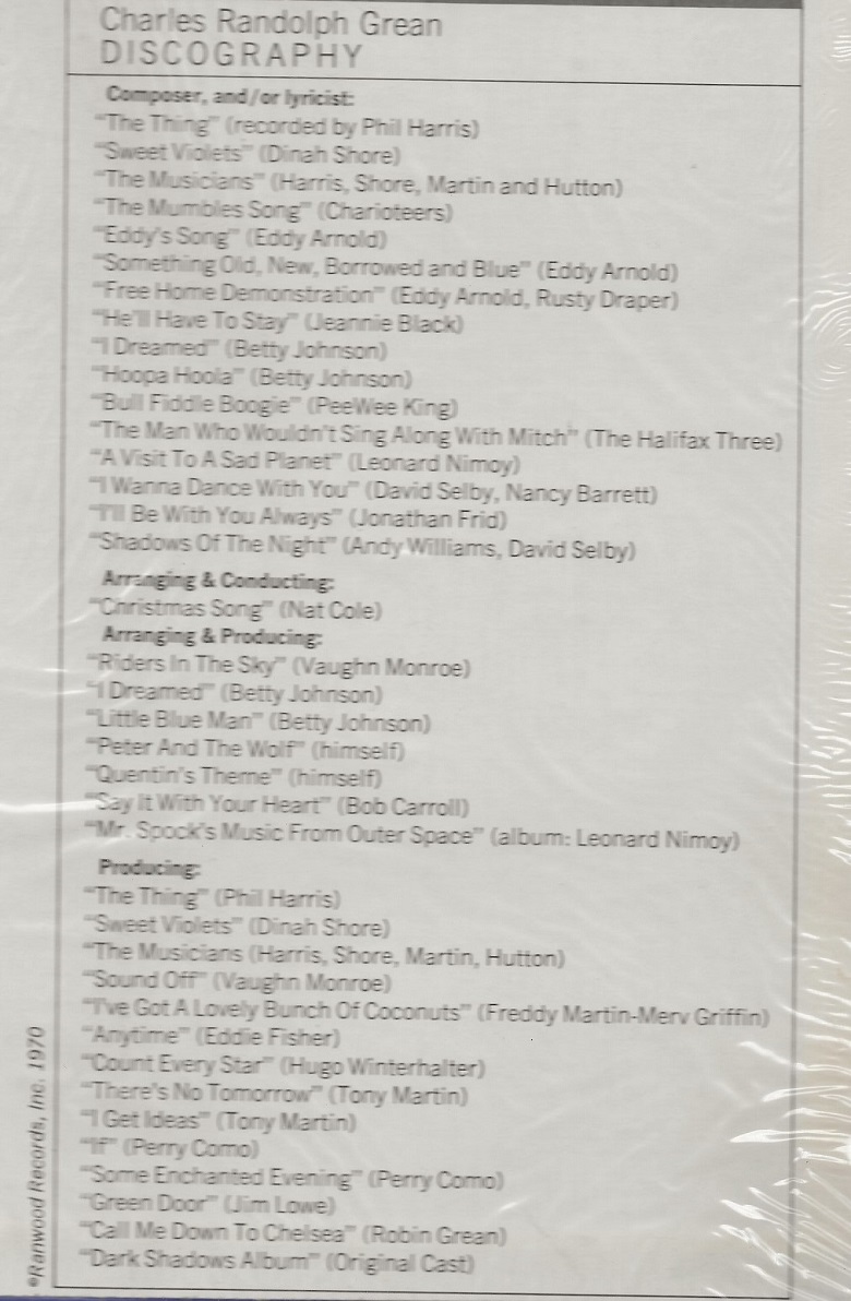 Tracks Composed By: Robert Cobert, Charles Grean