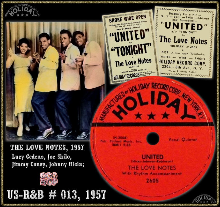 The Love Notes aus Manhattan, New York, nannten sich ursprünglich The Ivories und waren Johnny Hicks, Lead-Tenor, Dave Cole, erster Tenor, Joe Shallow (manchmal auch Shiloh), zweiter Tenor, Johnny Earl Jackson, Bariton, und James Coney, Bass. Im Herbst 1957 kam der Bass-Sänger Jimmy Coney ins Gefängnis, da er an einem bewaffneten Raubüberfall beteiligt war. Das war das Ende der Love Notes. Der Bariton Johnny Earl Jackson ließ aber nicht locker, holte sich Ella Lewis als Lead-Sängerin, ihren Bruder Richard Lewis als ersten Tenor, Moses Brown als Bariton, und er selbst übernahm den "Bass". Dann gab es noch einen zweiten Tenor namens "Blinky". Mit dieser Besetzung gings zu MERCURY, wo wieder der alte Name "The Ivories" hervorgeholt wurde. Bei BUZZ, jetzt als Ivoleers, fehlten wieder einige Sänger, aber Ella Lewis und Johnny Earl Jackson waren die Lead-Stimmen.