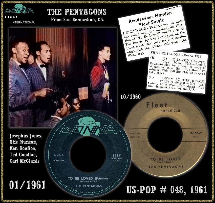 10 60....F-100-1....THE PENTAGONS..Down At The Beach/-2….To Be Loved (dann DONNA 1337)