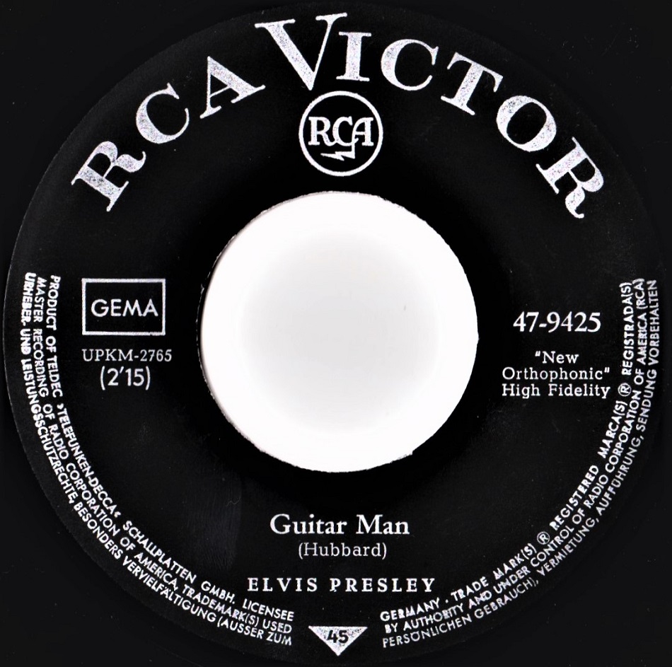 Dreizehn Jahre später wurde "Guitar Man" in einem neuen elektrischen Arrangement neu aufgenommen, wobei Presleys Originalgesang intakt blieb und es der letzte seiner elf Nummer-Eins-Country-Hits war. Der Rekord erreichte Platz 28 der Billboard Hot 100 und war sein letzter Top-40-Pop-Hit in den USA.