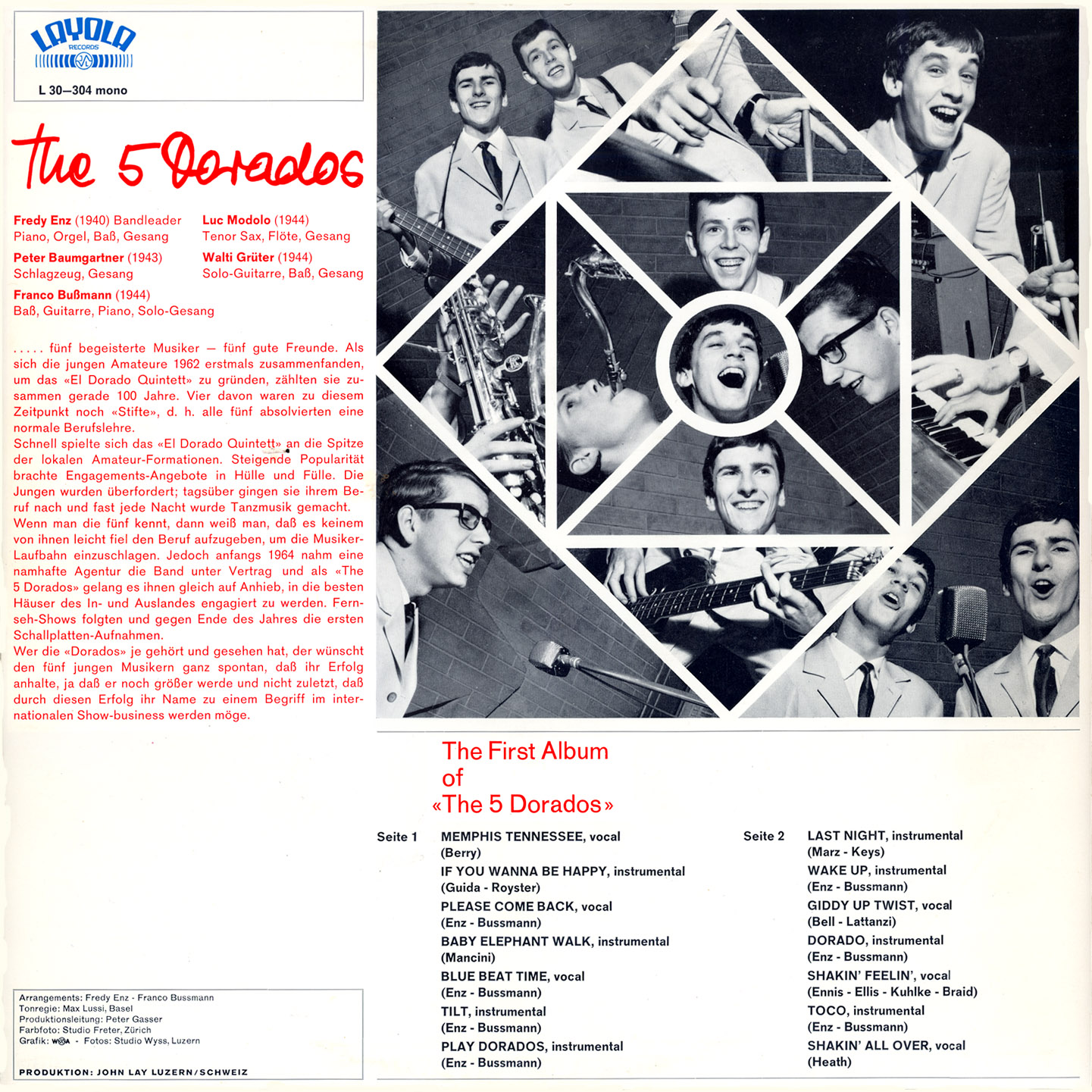 Gesangquintett aus der Schweiz (u.a. PETER BAUMGARTNER-voc, d, 1964-69 FRANZ "FRANCO" BUSSMANN * 16.04.1944-b, g, p, voc von dem Duett Die JUNIORS-1961/63),