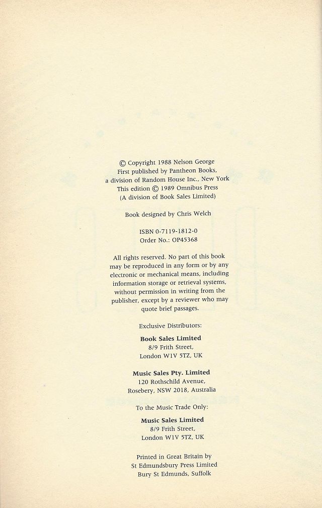 Das Buch ist 1990 im Hannibal-Verlag (Wien) als Hardcover mit ISBN 3-85445-051-6 erschienen. Das Original wurde von Nelson George geschrieben, die ich auch mal hatte und auf einem Atlantik-Flug gelesen hatte. Die Übersetzung ist von Lore Boas. 2002 erschien eine Taschenbuchausgabe: