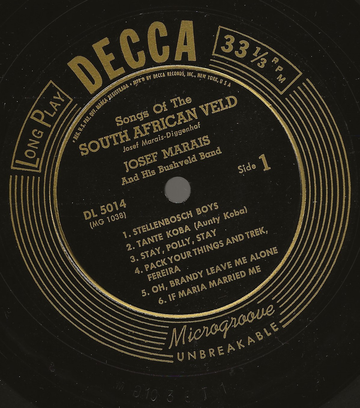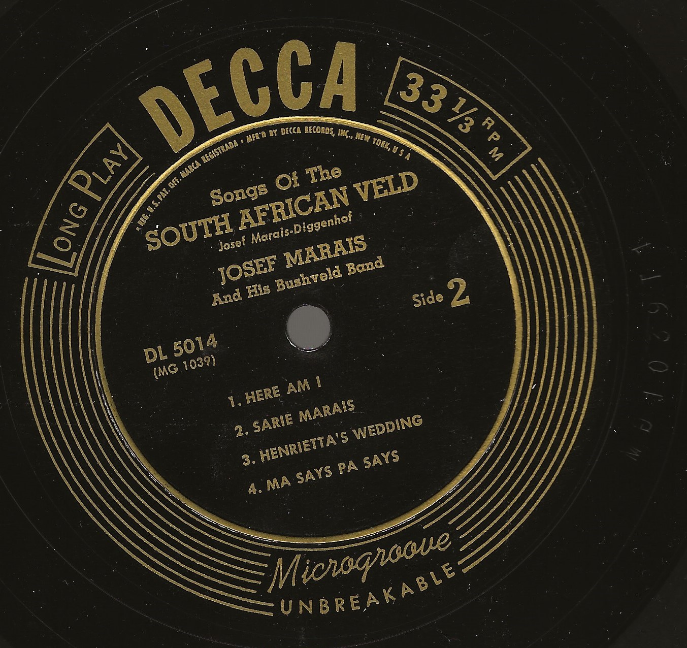 (10 46) 50....9-23692 Album No. 9-134 (8 sides—7) JOSEF MARAIS And His Bushveld Band..The Zulu Warrior (45-73295)/(8 sides—8 ) Pity The Poor Patat (45-73314)