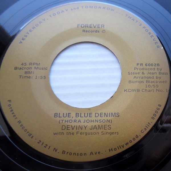 10 59....45-1006....DEVINY JAMES Bumps Blackwell Orch. And Fergusons..Blue Denims/DEVINY JAMES Bumps Blackwell Orch. Ferguson Sing..Little Girl (dann FOREVER 6002)