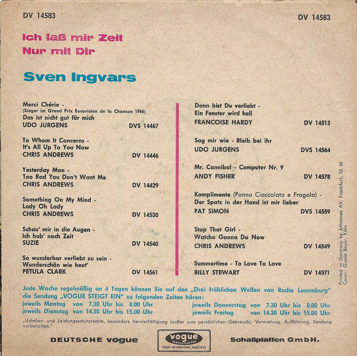 frühen 60er Jahren mit ihren Plattenaufnahmen. Dabei sangen sie durchaus