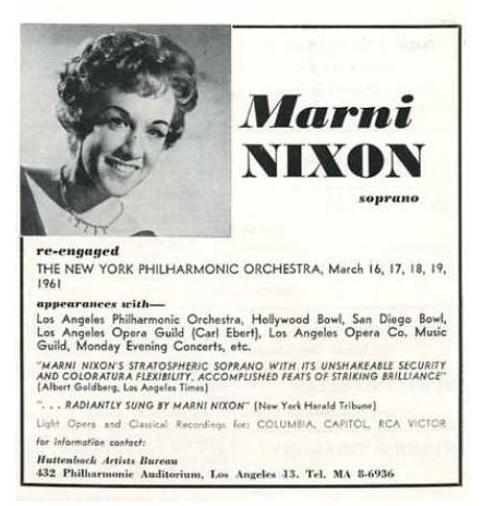 In unserer kleinen Nixon-Serie hier die Opernsängerin MARNI NIXON,