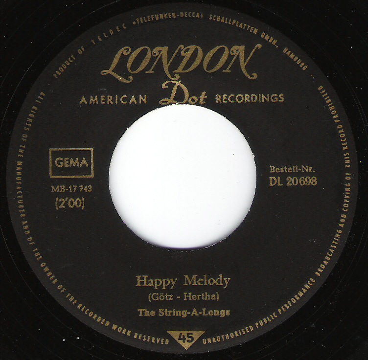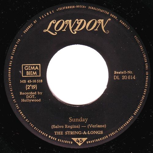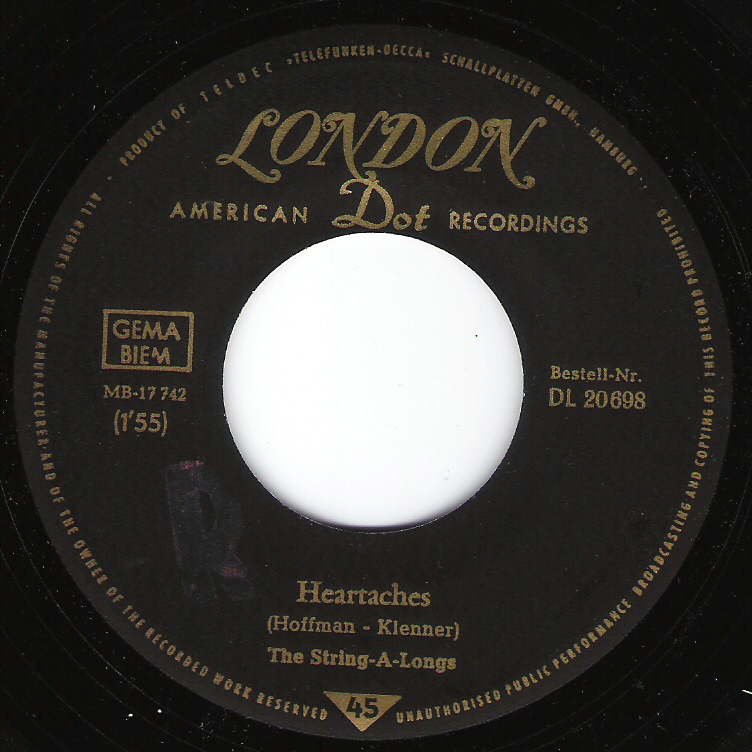 Der Anlaß für dieses Thema ist eine Neuerwerbung einer Bildhülle die mir aus mehreren Gründen sehr kurios erscheint. Zum Ersten scheinen Interpret, Titeln, Bestellnummer und Label nur auf einer Seite auf, was ich für eher ungewöhnlich finde und zum Zweiten scheint mir das Motiv der Bildhülle für den Inhalt deplaziert, es erinnert eher an Volksmusik. Darum wollte ich sie euch unbedingt zeigen. Der Themenname ist aber so gewählt, dass man alles über die String-A-Longs hier unterbringen kann. Als Einstieg eine LONDON-Single-Diskographie: