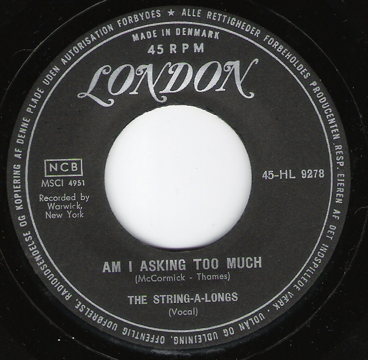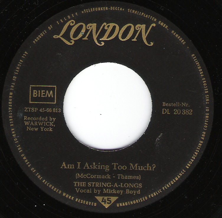 03 61...DL 20 382...THE STRING A LONGS Wheels/THE STRING A LONGS Vocal by Mickey Boyd Am I Asking Too Much? (WARWICK 603)