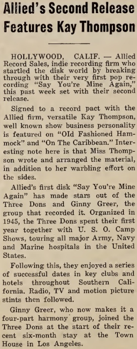 ?? 63....45-205....THE THREE DONS & GINNY..Say You're Mine Again (BR-2009)/Tutti-Frutti Baby (BR-2010) (ALLIED 5000)