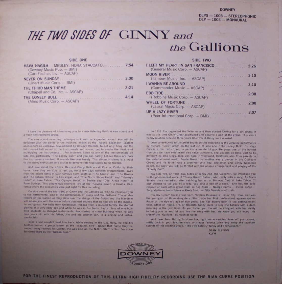Die Sängerin Ginny Greer wurde als Virginia Culmsee, vermutlich in Sioux City, Iowa, geboren und hatte bereits mit fünf Jahren einen professionellen Auftritt bei einem Radio-Sender in Sioux City. 1954 heiratete sie den Gitarristen und Mandolinen-Spieler Rex Gallion, mit dem sie auch gemeinsame Aufnahmen machte.