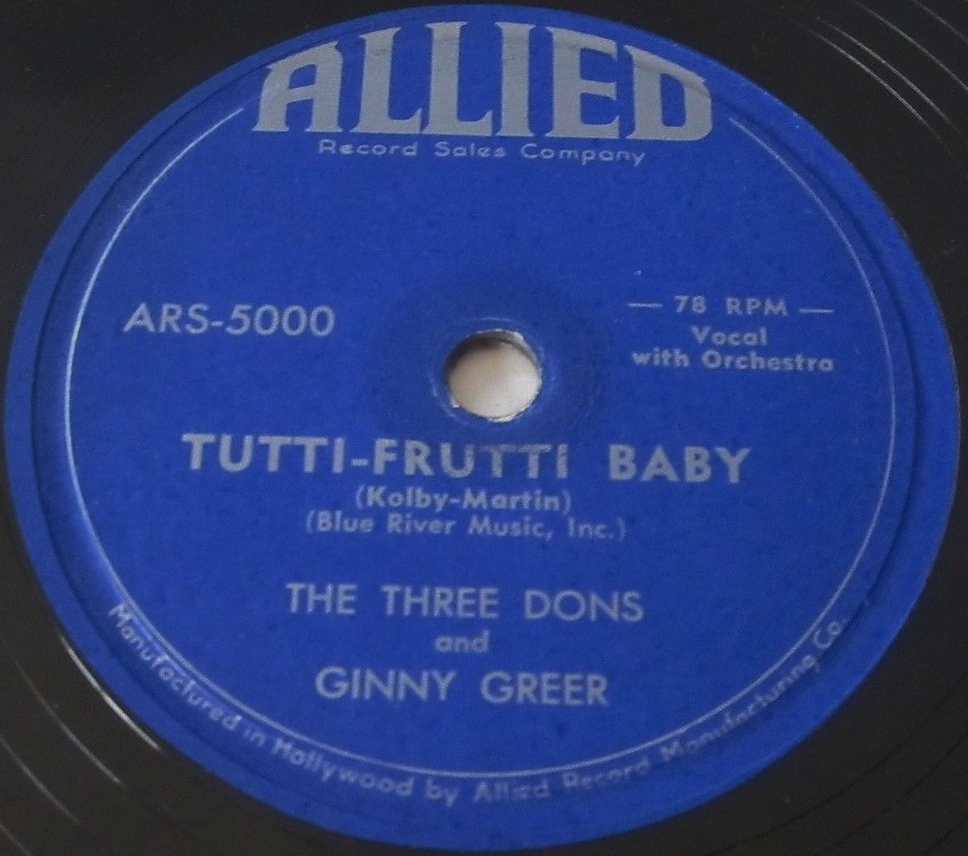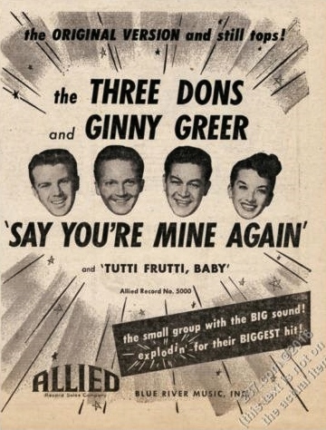 03 53....ARS-5000-F....THE THREE DONS and GINNY GREER..Tutti-Frutti Baby (105-8 )/Say You're Mine Again (106-8 ) (dann BLUE RIVER 205)