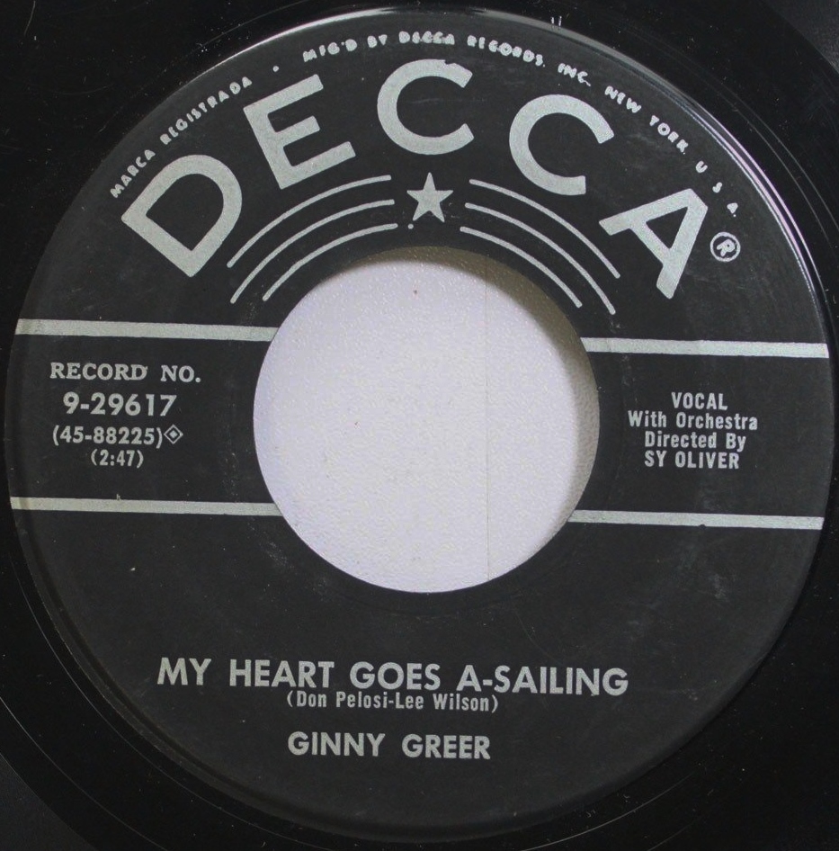 08 55....9-29617....GINNY GREER..The Kissing Dance (45-88224)/My Heart Goes A-Sailing (45-88225)