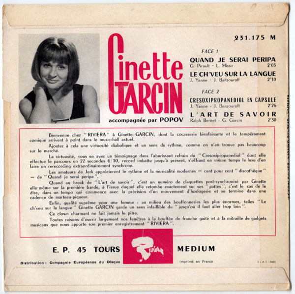 Die Französin GINETTE GARCIN nahm ab den späten 40er Jahren