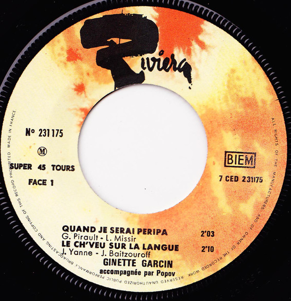 und JEAN MARCO das Duett "Tout Est Tranquielle" (Pathe 78TPG 369)