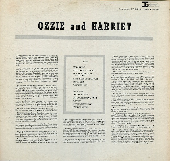 mit OZZIE in den 50er Jahren eine eigene TV-Show hatte, in welcher