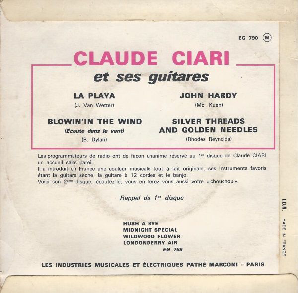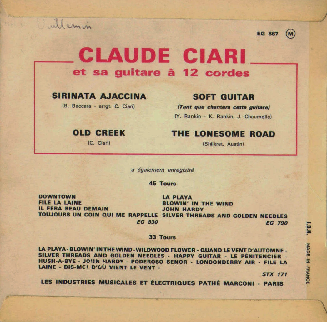 CLAUDE CIARI arbeitete als Sänger und vor allem als Gitarrist. Zunächst