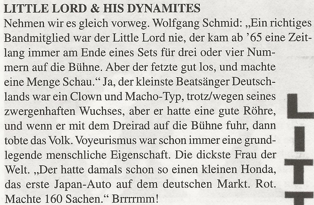 Ab 1965 trat er als Little Lord (Größe 140 cm) auch mit den Dynamites auf.