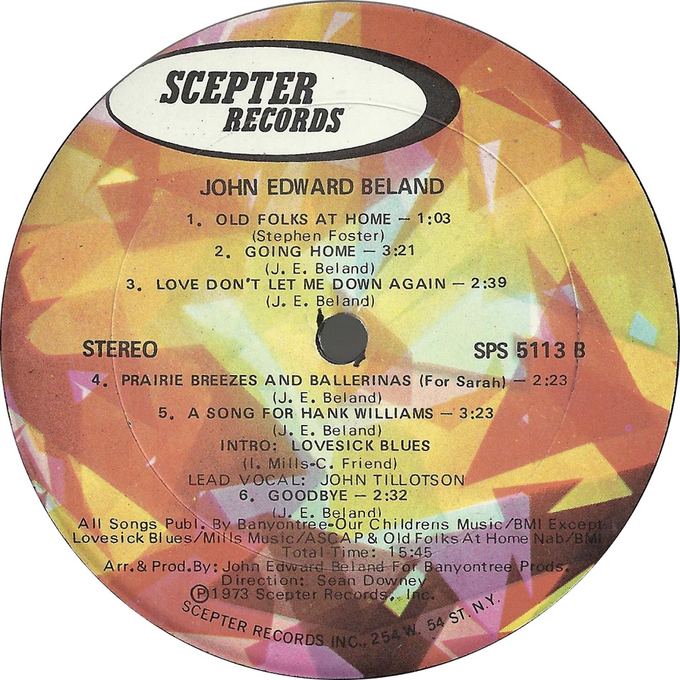 auf dieser LP von John Edward Beland ist von Johnny Tillotson kurz eingeblendet der