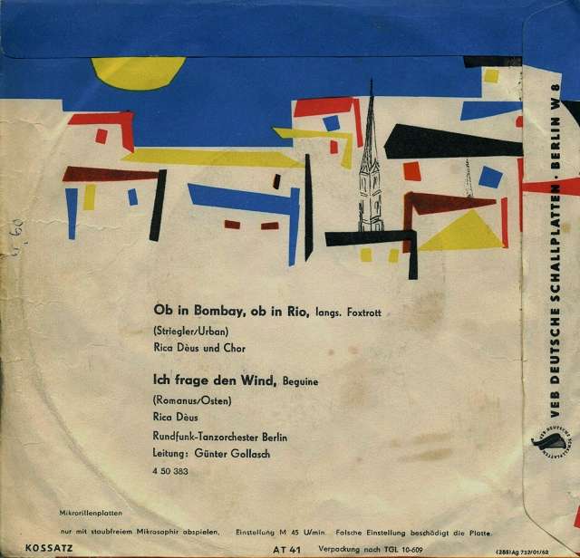 ?? 63....4 50 383 A....Rica Déus und Chor Rundfunk-Tanzorchester Berlin Leitung: Günter Gollasch..Ob in Bombay, ob in Rio/ B....Rica Déus Rundfunk-Tanzorchester Berlin Leitung: Günter Gollasch..Ich frage den Wind