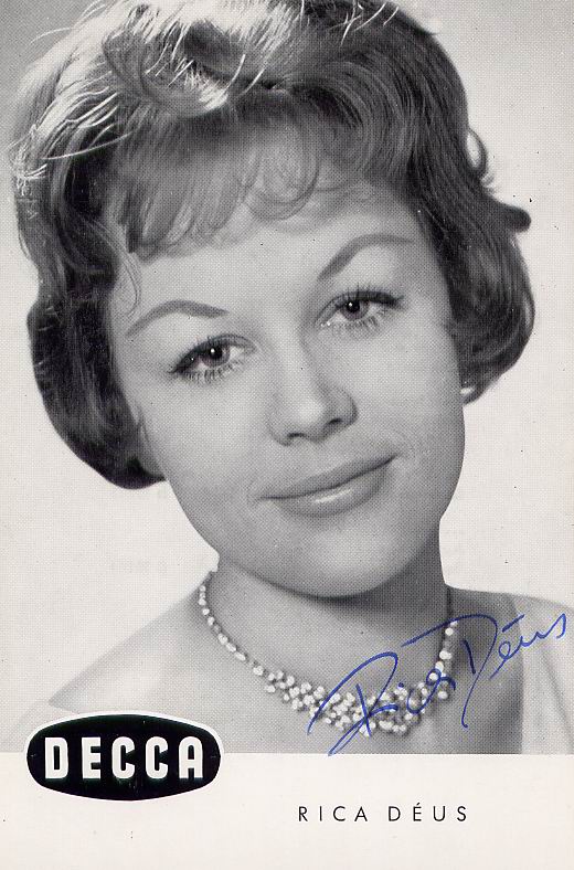 Oldiefan52, mein wichtigster Ezzes-Geber für die Cover-Liste, machte mich auf Rica Déus aufmerksam, da diese Sängerin auch einige deutschsprachige Cover-Versionen anzubieten hatte. Dabei ist mir aufgefallen, dass Rica Déus eine der wenigen deutschen Schlagersängerinnen ist, die noch kein eigenes Forum bei uns haben. Und da es, trotz der Überschrift "Rock'n'Roll-Schallplatten", bei uns eine große Anzahl von Fans des deutschen Schlagers gibt hat mich das gewundert und so habe ich mir gedacht, ich werde ihr ebenfalls ein Forum einrichten.