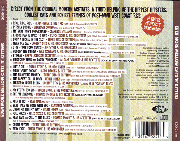 Felix Gross(vo),Buddy Floyd(ts),Ralph Hamilton(b),Jesse Sailes(ds),Little Willie Littlefield(p),Joe Howard(ts),Tiny Webb(g)and more Recorded in Los Angeles,1947/48 / Recorded in Los Angeles,1949 / Recorded in Los Angeles,8 June 1949 usw.