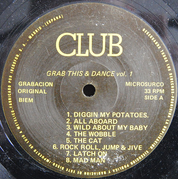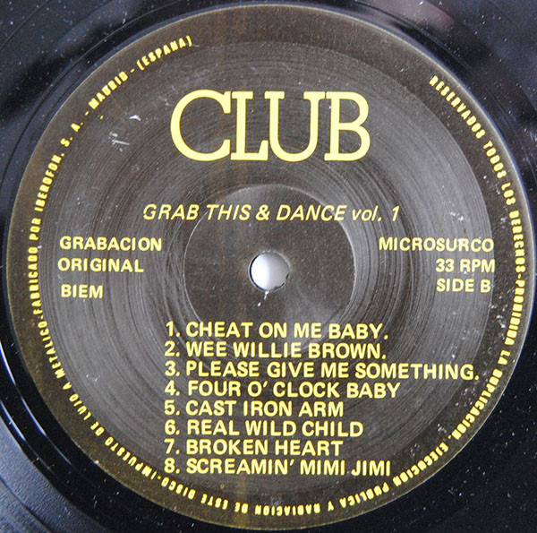 Die Spanier haben beispielsweise ab dem Jahre 1993 so eine "Kraut & Rüben"-Serie unter dem Namen "Grab This & Dance" ins Leben gerufen, die es bis Volume 25 brachte. Für Interessierte will ich nun versuchen jene Original-Veröffentlichungen in Klammer zu nennen, die sich auf der Schallplatte hörmäßig befinden sollten. Ob es sich wirklich immer um die Original-Aufnahme handelt, kann ich ohne Hör-Möglichkeit leider nicht bestätigen. Als Draufgabe gibt es jeweils drei Singles aus meiner Sammlung.