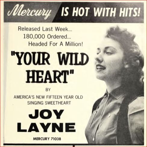 Die Sängerin Joy Layne wurde 1941 in Chicago, Illinois, geboren. 1956 arrangierte Joy's Mutter ein Treffen mit dem A&R-Manager Art Talmadge von MERCURY und konnte für ihre noch nicht 16-jährige Tochter einen Plattenvertrag aushandeln. Die erste Veröffentlichung war der Poni-Tails-Titel "Your Wild Heart", mit dem sie in den Charts den 20. Platz erreichte. Lenny LaCour produzierte noch weitere Titel von ihr, die aber keinen Erfolg mehr brachten. 1961 wurde ihre letzte Single veröffentlicht.