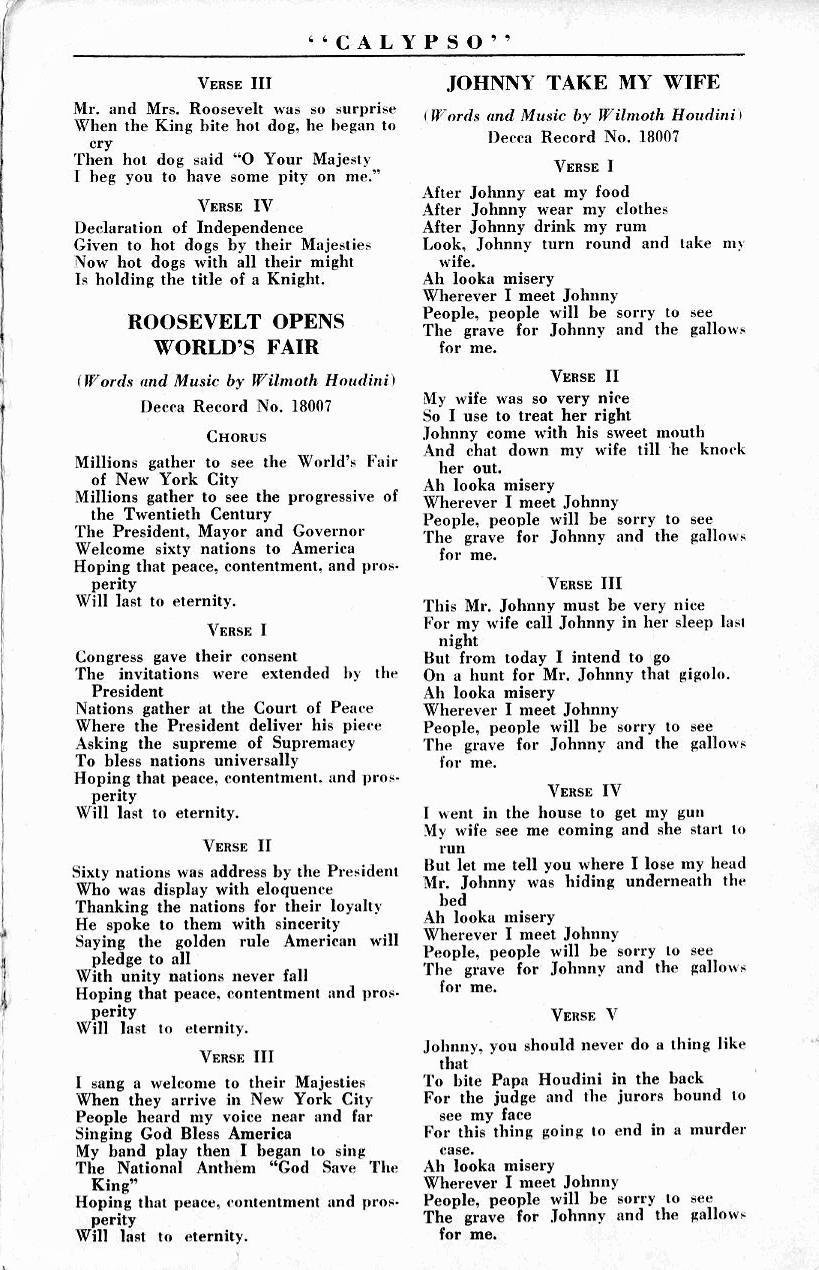 WILMOTH HOUDINI war seit den 30er Jahren einer der legendären