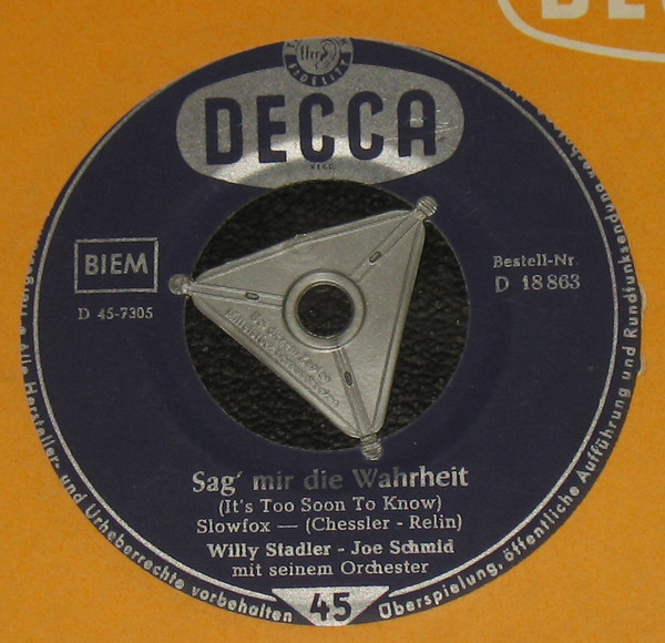1958 Decca 18863 ("Sag Mir Die Wahrheit (It’s Too Soon To Know)"/"Wenn Wir Zwei Uns Wiedersehn (Young And Warm And Wonderful)" & JOE SCHMID mit seinem Orchester)