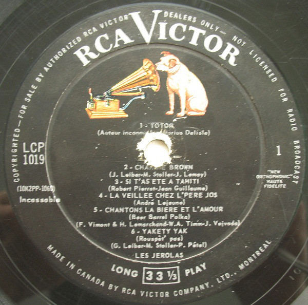 ?? 57....57-5363....Les Jérolas avec Les Chansonniers Marcel Scott, dir. Orch. : George Codling..Chantons la bière et l'amour (Beer Barrel Polka) (10H2PW-1065)/Lisette (10H2PW-1066)
