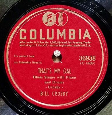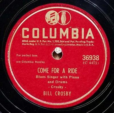 William J. "Bill" Crosby was a Sam Theard-like vocalist whose career remains obscure. On April 19, 1945, Musicians Union Local 208 accepted and filed his contract for 4 weeks at the Bar o' Music. On October 18, 1945, he posted a contract for 4 weeks at The Whip. This is all we know about his activity in the clubs, but in his capcacity as a vocalist, Crosby would not have been identified as the leader for contracting purposes. Because the Bar o' Music regularly booked solo pianists, we may infer that he was playing piano at the time he signed these contracts. Crosby made two sessions for Columbia in Chicago in 1945 and 1946. The first was done with skeletal accompaniment: a George Zack styled barroom jazz pianist, probably Cosby himself, and rather clatttery drums. "Have You Seen My Gal," from Crosby's first session, was subsequently taken up by Roosevelt Sykes for his February 18, 1946 session—see immediately above.