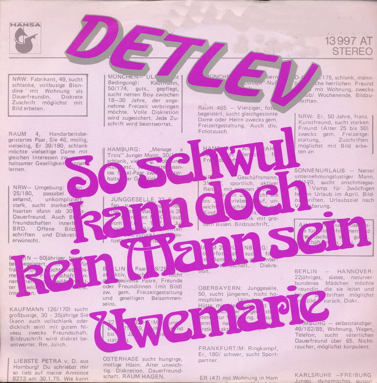 unter dem Pseudonym DETLEV Interpretation von Titeln schwulen Inhalts