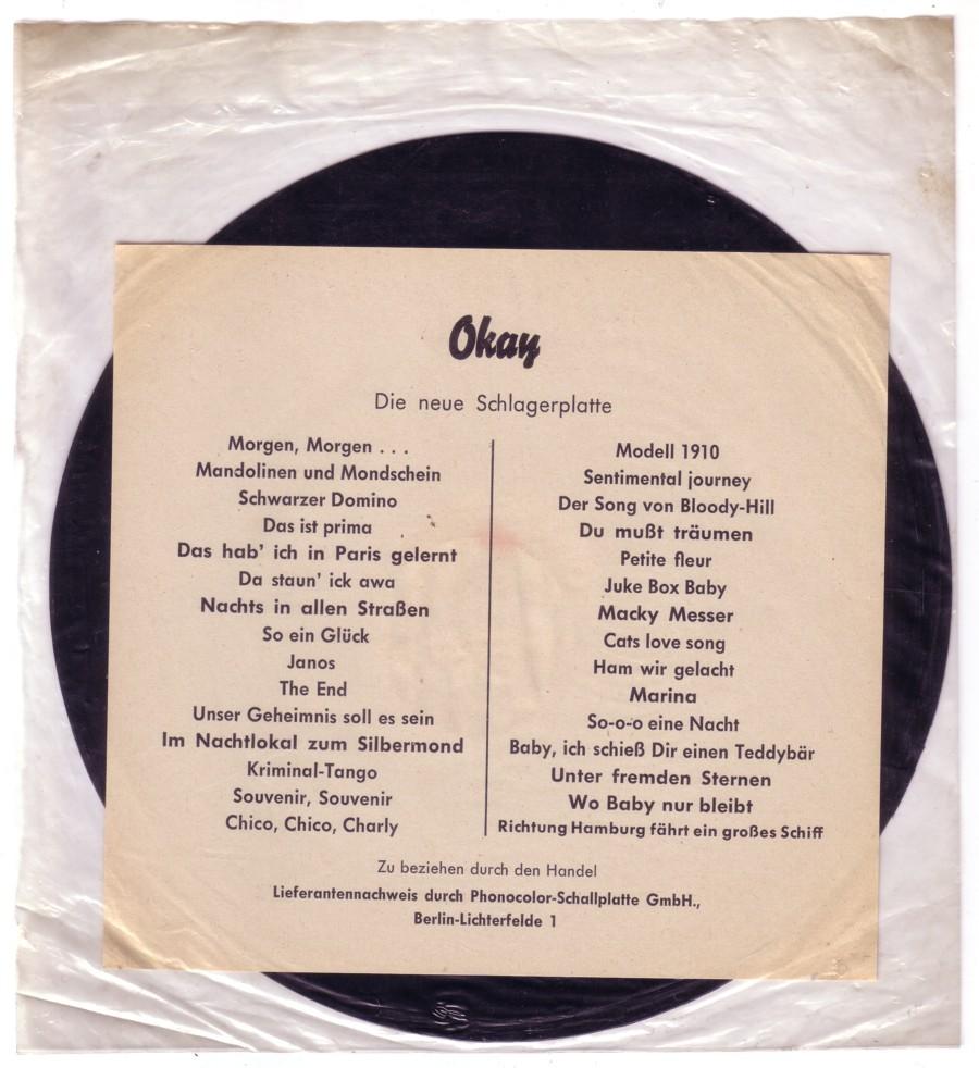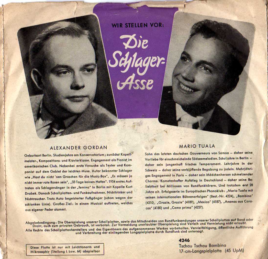 Jan. 1961 auf Tefi-Schallband ("Das Ende Der Liebe" & HORST GRAF u. 5 PING-PONGS-mit ALEXANDER GORDAN),