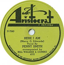 Penny Smith was the third in a long series of stage names employed by Reba Jeanette Smith, who was born on February 1, 1928, in Corbin, Kentucky. In 1948, using the name Reba Penny Smith, she was Miss Plug Horse Derby in Lexington, Kentucky, then placed second in the Miss Kentucky State Fair contest. Going as Debbie Smith, she moved to Nashville and tried to break in as a singer. While doing a radio show there, she met Jim Lounsbury (1923-2006), who had recently become a DJ on WIND in Chicago. She was headed to Chicago to get publicity photos made, and he was flying back in a rented plane, so she hitched a ride with him. Not long after her arrival in Chicago, they were married. It's a reasonable guess that Lounsbury talked the Chess brothers into recording her, but preferred to keep his role quiet.