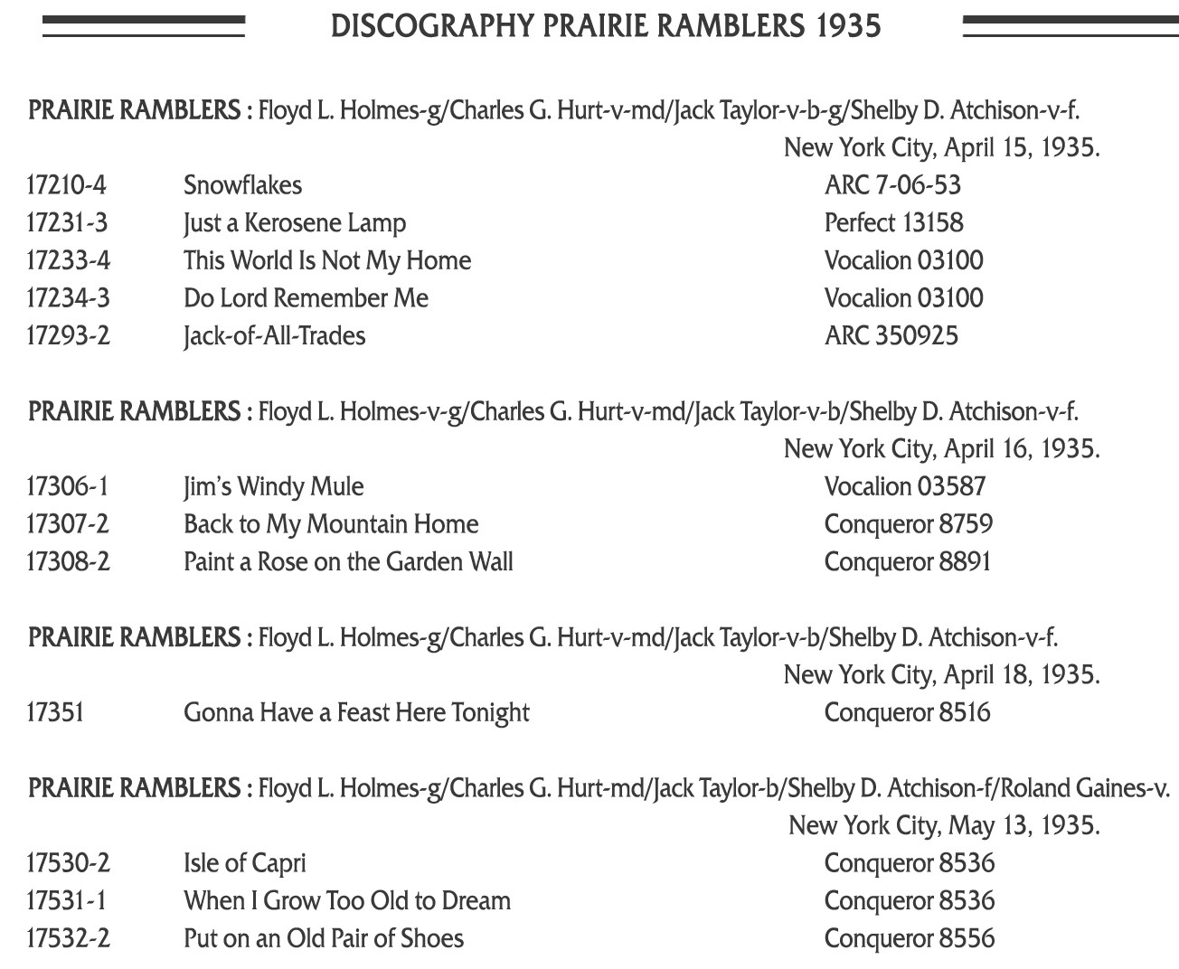Zeitweise trat er mit seinen Skokie Valley Boys an verschiedenen Orten in der Stadt auf. Neben seinen Soloauftritten war Rusty als Sänger auf mehreren Okeh-Platten zu hören, zuletzt als Trio mit Bob Atcher und Bonnie Blue Eyes aus der CBS-Show “Ben Bernie“.