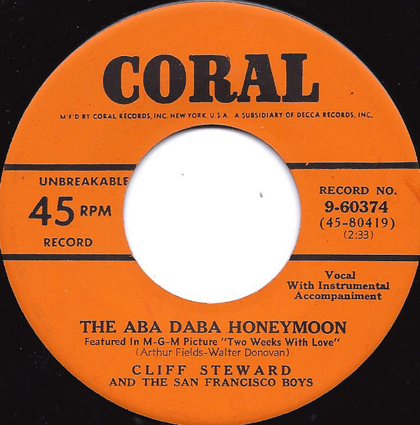 02 51....9-60374....CLIFF STEWARD AND THE SAN FRANCISCO BOYS..The Aba Daba Honeymoon (45-80419)/Down In The Jungle Town (45-80420)