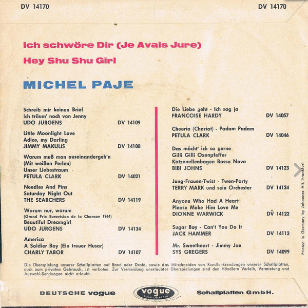 geboren. Von 1963 an war er auf Vogue-Schallplatten bis 1968 zu hören,