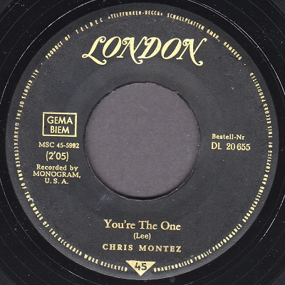 Für die Liebhaber von deutschen Coverversionen einmal Chris Montez mit "Let's Dance". Die MONOGRAM-Single gabs bei uns auf LONDON DL 20 655.