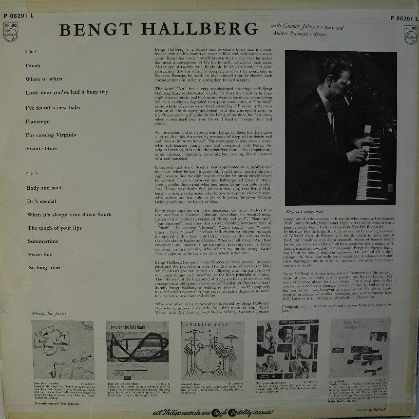 with rhythm accompaniment by Gunnar Johnson (bass) and Egil Johansen (drms)..Love For Sale - Cabin In The Sky/Don't Get Around Much Anymore - I Didn't Know What Time It Was
