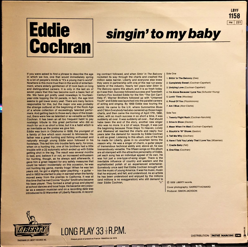 Eddie Cochran LIBERTY (LBYF 1158) FRANCE REISSUE (singin´to my baby) von 1978.