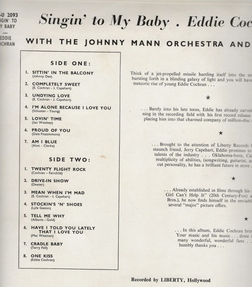Wohl die beruhigendste Cochran LP, die ich kenne, aber wenn man den einen Song hörte, will man auch den Rest hören!!