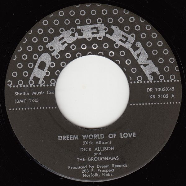 11 60....DR 1003x45....DICK ALLISON and THE BROUGHAMS..Dreem World Of Love (KB 2102 A)/RON THOMPSON and THE BROUGHAMS..Tiki Guitar (KB 2102 B)