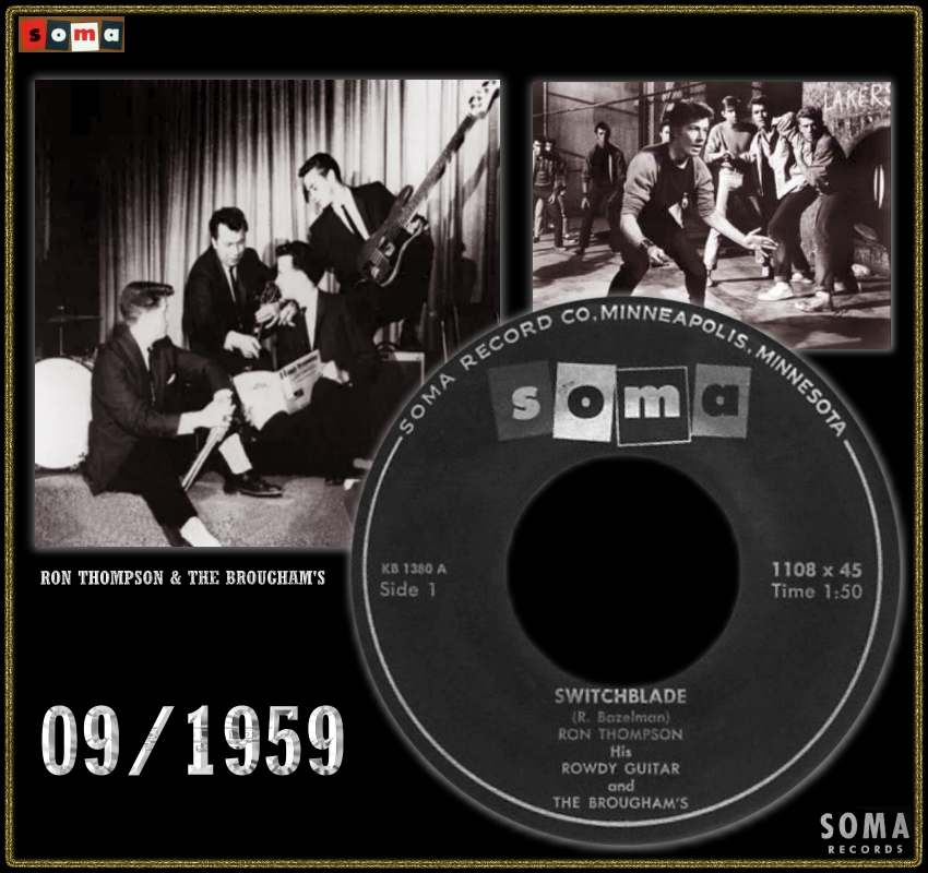 09 59....1108 x 45....RON THOMPSON His ROWDY GUITAR and THE BROUGHAM'S..Switchblade (KB 1380 A)/Hot Night (KB 1380 B)