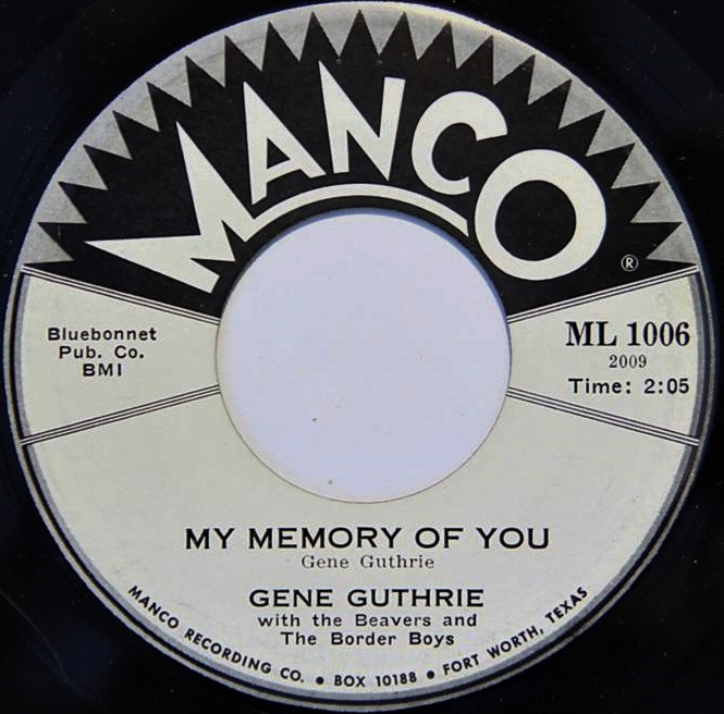 Diese Singles gab es von Gene Guthrie: MANCO ?? 60....ML1006....GENE GUTHRIE with the Beavers and The Border Boys..My Memory Of You (2009)/You Don't Know What Love Is (2010)