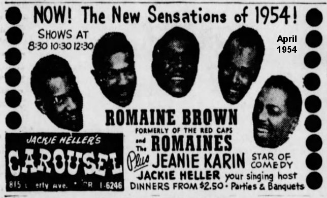 Das Billboard-Magazin vom 1. Mai 1954 berichtete über einen Auftritt von Romaine Brown & The Romaines im Carousel in Pittsburgh, dass die Agentur Jolly Joyce Baby Dee als ständiges/permanentes Mitglied der Gruppe aufgenommen hatte. "Permanent" war eine relative Bezeichnung, denn sie war schon Mitte Juli wieder verschwunden, als sie im Cotton Club in Atlantic City auftrat und auf eine Solo-Karriere zusteuerte.
